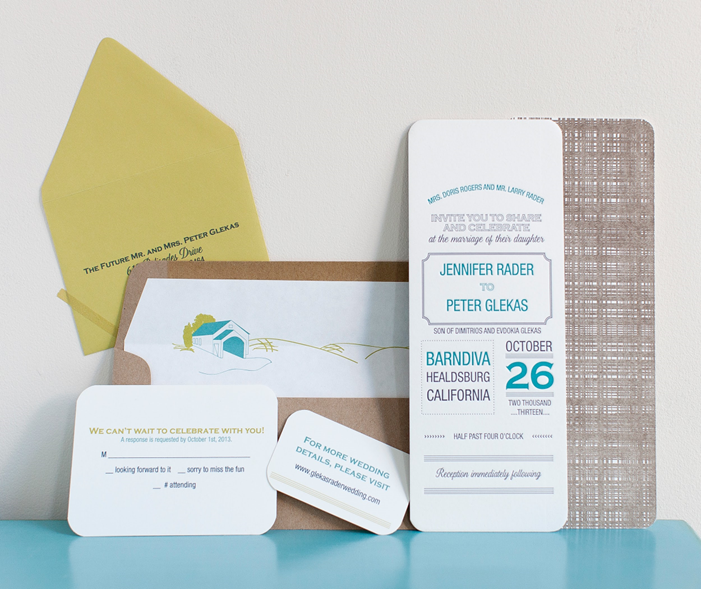 There is a lot going on in this example as far as font! Across the entire invitation suite, you can pick out at least four distinct fonts, not to mention a variety of colors, sizes, and fill patterns. Yet despite the many fonts, you don’t get a haphazard, disconnected impression. That’s where the design expertise of our studio comes in! When you search for “wedding invitation printing near me,” one of the big things you’re looking for is the skill to help you achieve variety and unity with the colors and styles that speak to you.