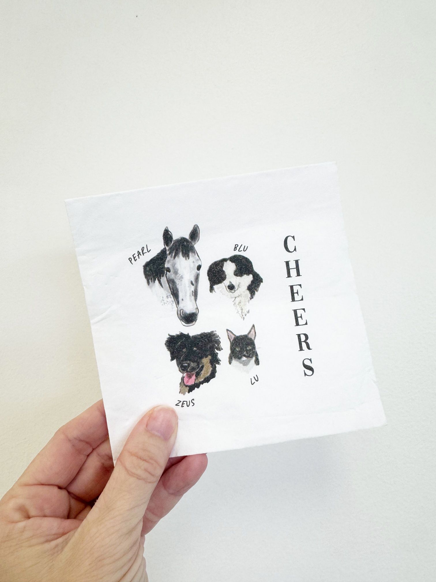 Here at Dodeline, we’ve been making custom wedding stationery and dog wedding napkins for over 15 years. The funny thing is that in the first 10-ish years of our business, we never drew a single dog or animal to go in wedding stationery! Nowadays, oohing and ahhing over people’s pets is one of our main activities. We love seeing your sweet four-legged friends and getting the chance to draw them. Owner and founder Sarah Reed does in fact draw each one!