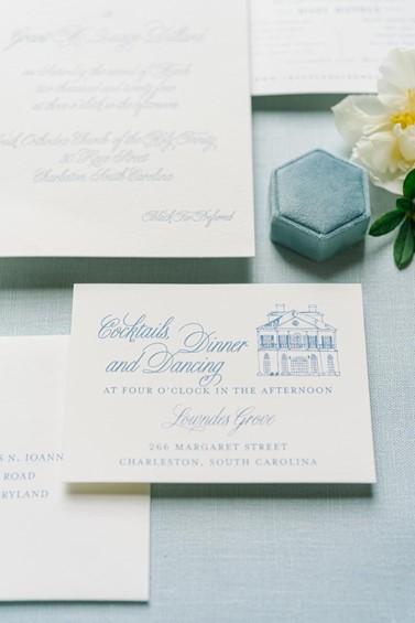 At Dodeline Design, for example, we specialize in custom venue illustrations and cohesive suites that tie every detail together—from the save-the-dates to the day-of paper goods. Whether you’re getting married beneath the moss-draped oaks of Charleston or on a windswept coastline halfway around the world, your invitations should tell your story.
